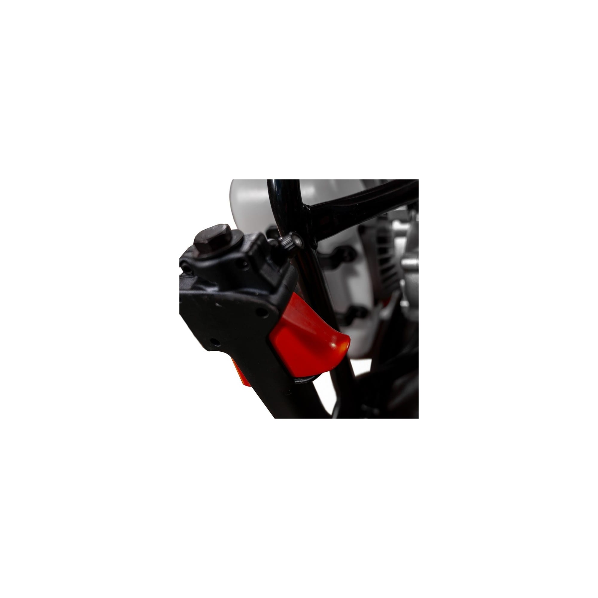 Tiene un mando ergonómico, donde encontramos todos los elementos de control de la máquina. De esta manera, tendremos un acceso fácil con una mano y podremos accionarla y pararla de forma extremadamente sencilla.