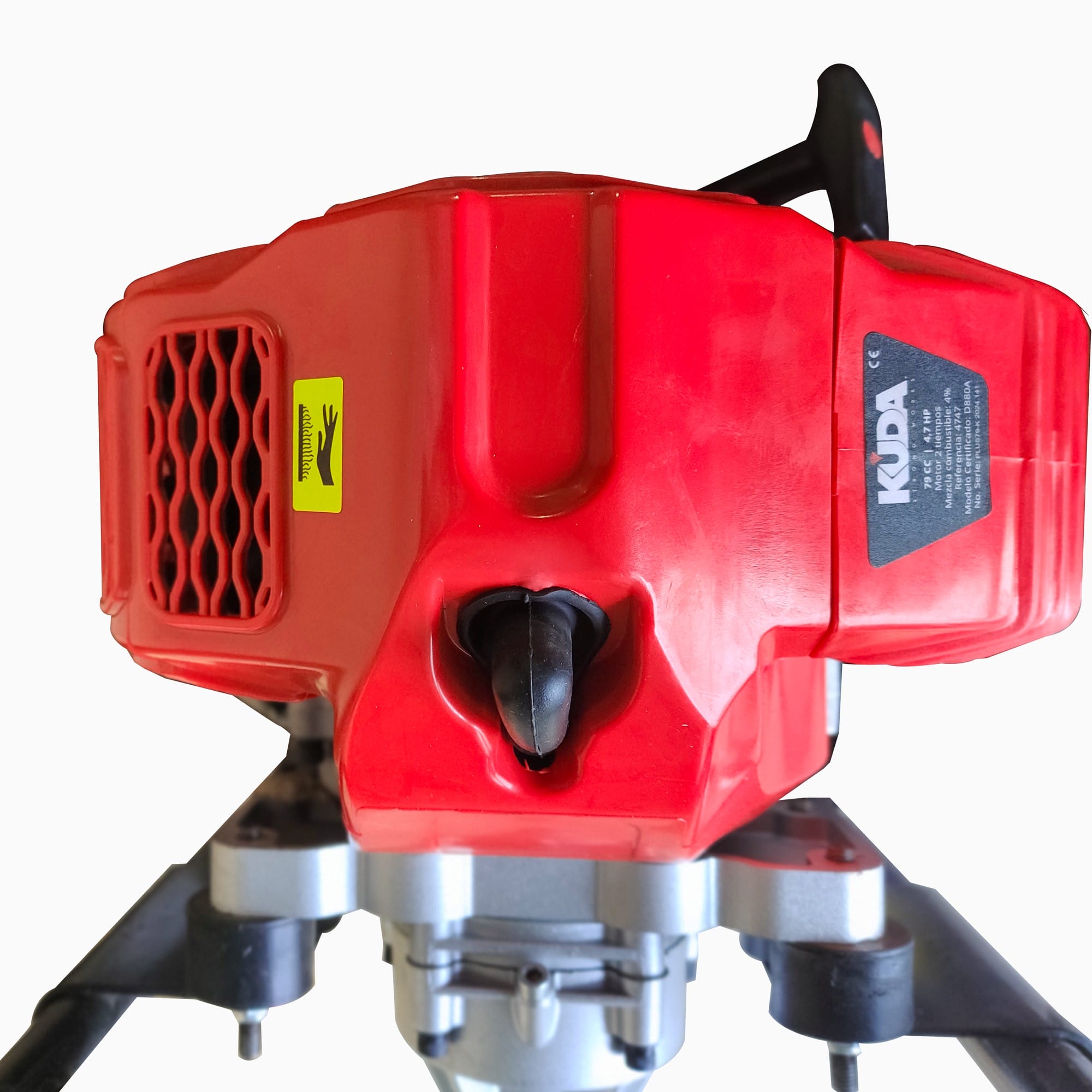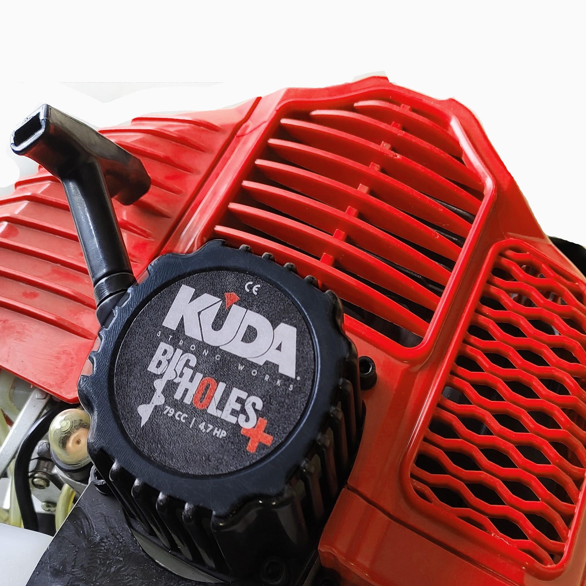 La ahoyadora de gasolina KUDA tiene un motor de dos tiempos ideal para soportar las duras jornadas agrícolas. Éste, tiene una gran cilindrada de 52cc y una potencia de 2 caballos que realizarán la fuerza que necesita además de proporcionar un encendido rápido con su sistema de arranque suave.
