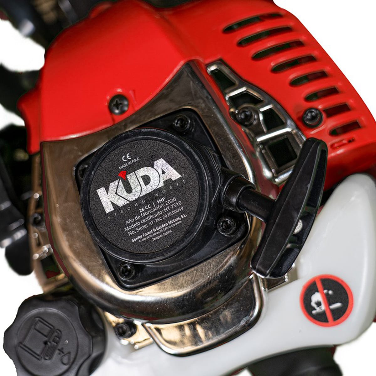 El cortasetos Kuda es perfecto para dejar su jardín a punto, una máquina manejable, potente y práctica que no le dejará indiferente. Con su motor de dos tiempos, manillar orientable y su resistente cuchilla podrá trabajar fácilmente y obtener unos resultados profesionales.