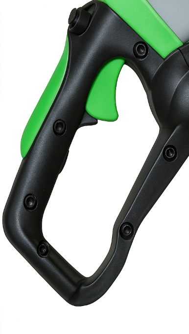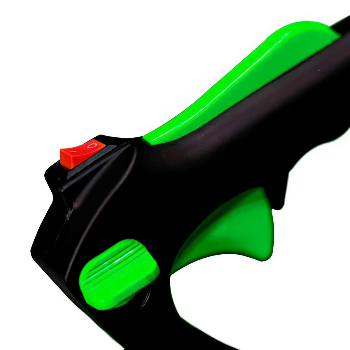 Su manillar ergonómico con giro de 180° permite ajustar el ángulo de corte con facilidad, lo que mejora la adaptabilidad en zonas difíciles y garantiza un manejo seguro en todo momento. Además, los controles están integrados en la empuñadura, lo que facilita el acceso rápido a las funciones principales de la máquina.