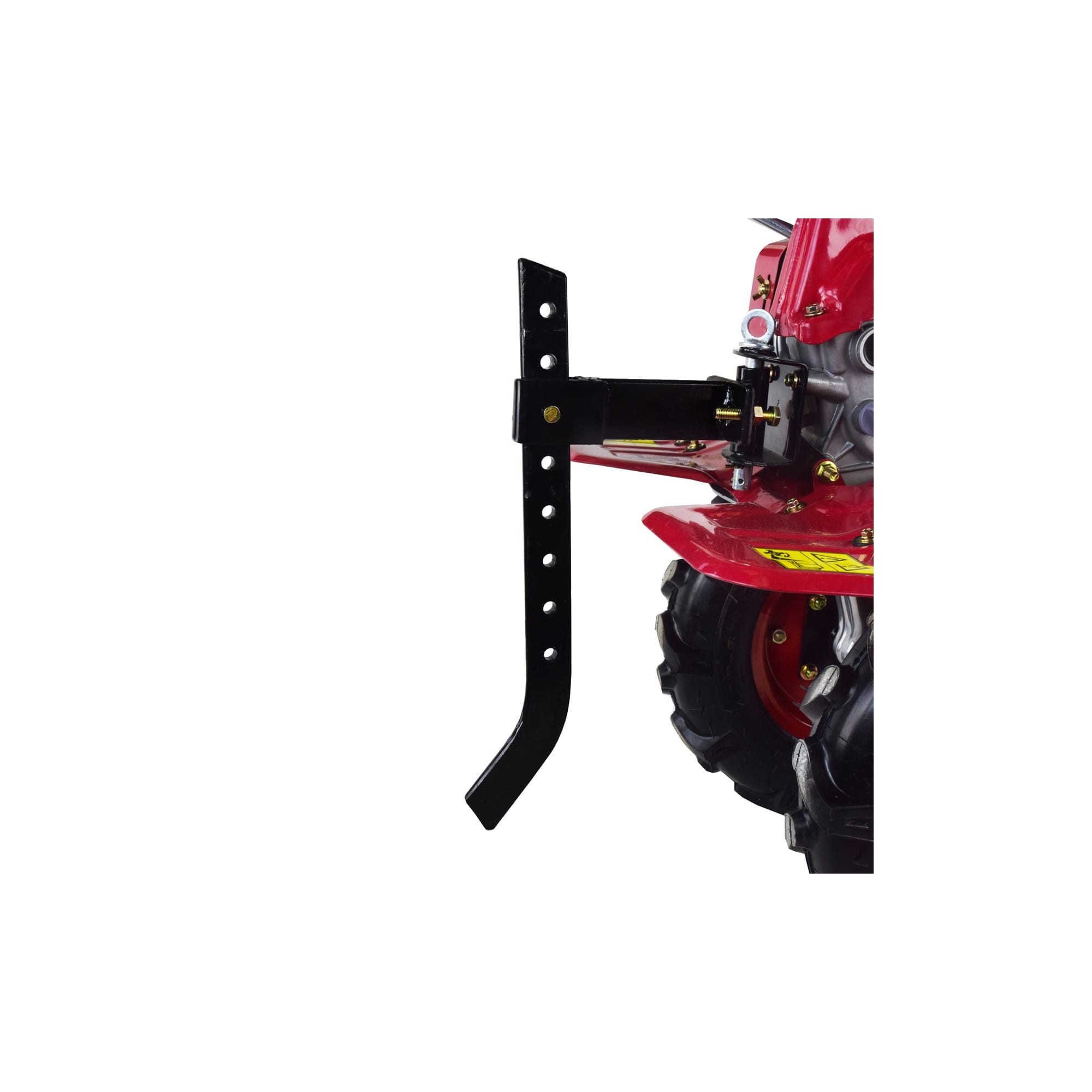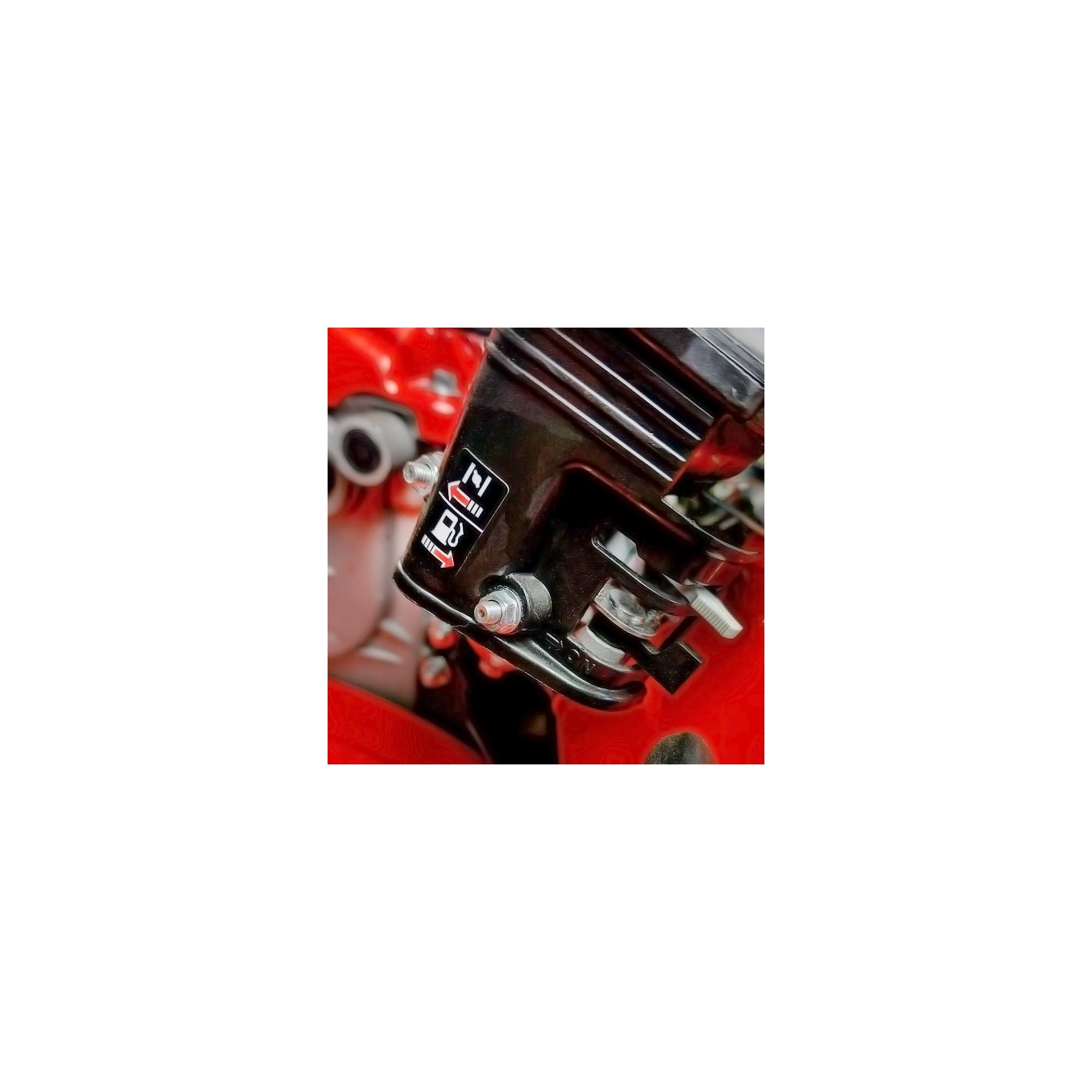 En el manillar tenemos todas las partes de accionamiento de la motoazada, el botón de encendido y apagado del motor y la maneta de embrague. En la barra principal tenemos el ajustador de altura, regulable a 3 posiciones, con un pasador. Así se podrá trabajar a distintas alturas simplemente cambiando un pasador.