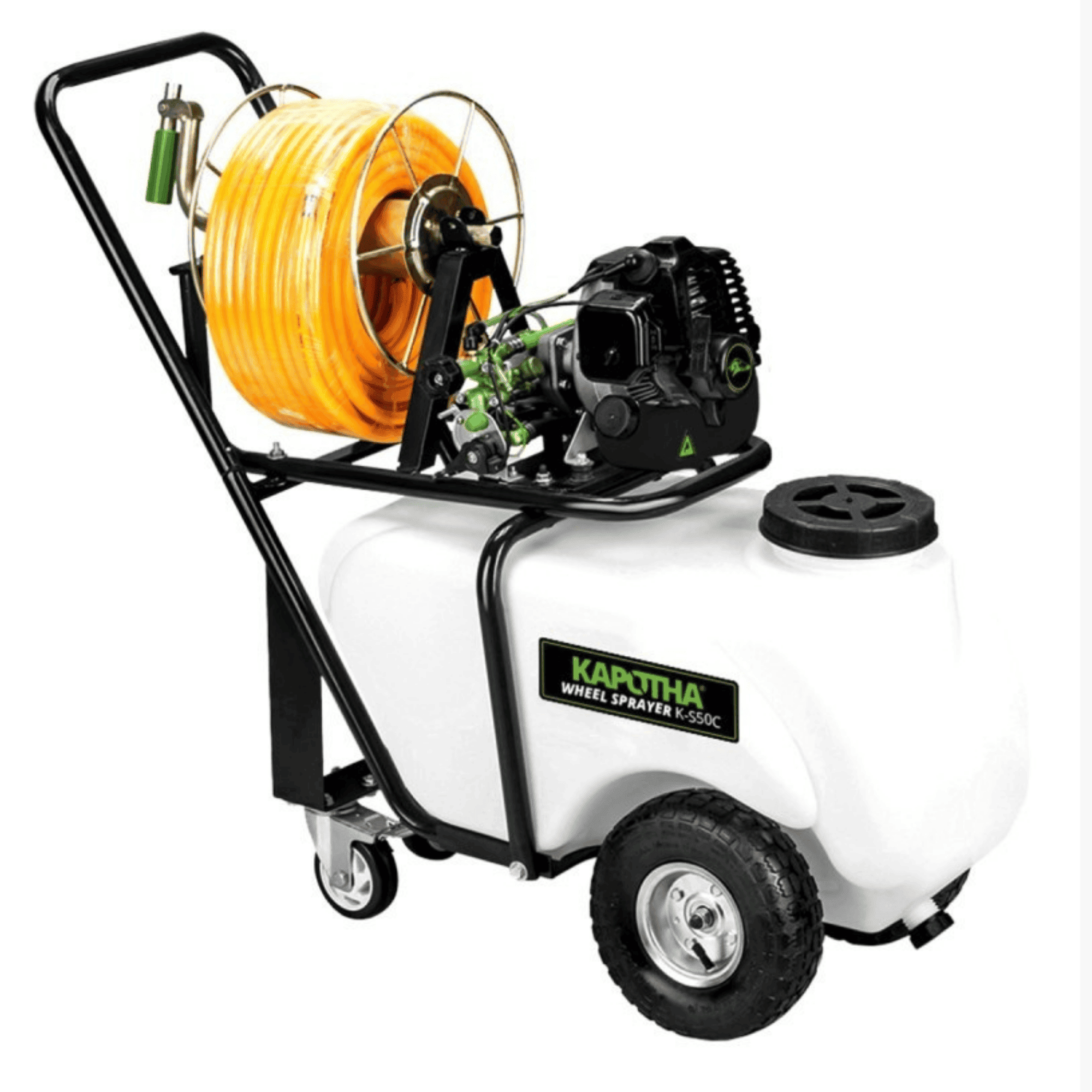 Los trabajos de riego, limpieza o fumigación pueden convertirse en una ardua labor, principalmente cuando se nos dificulta cargar peso en la espalda. Por eso, la Sulfatadora de carretilla 26cc 50L - KAPOTHA le ayudará a llevar a cabo dichas funciones sin mucho esfuerzo y proporcionándole un alto rendimiento.