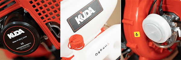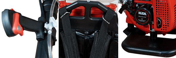 Esta atomizadora de gasolina KUDA ha sido diseñada para ofrecer ergonomía y confort durante su uso. Cuenta con un mando de control integrado en la lanza, lo que facilita la regulación del flujo y el manejo del equipo con total seguridad.